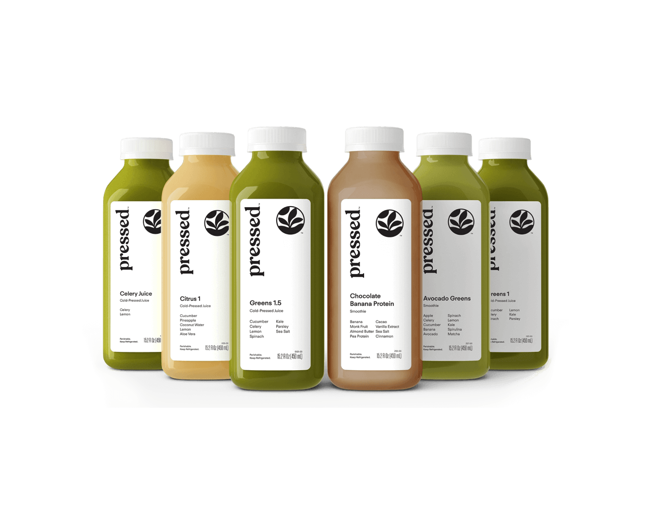 Celery Juice | Greens 1 | Avocado Greens | Greens 1.5 | Citrus 1 | Chocolate Banana Smoothie