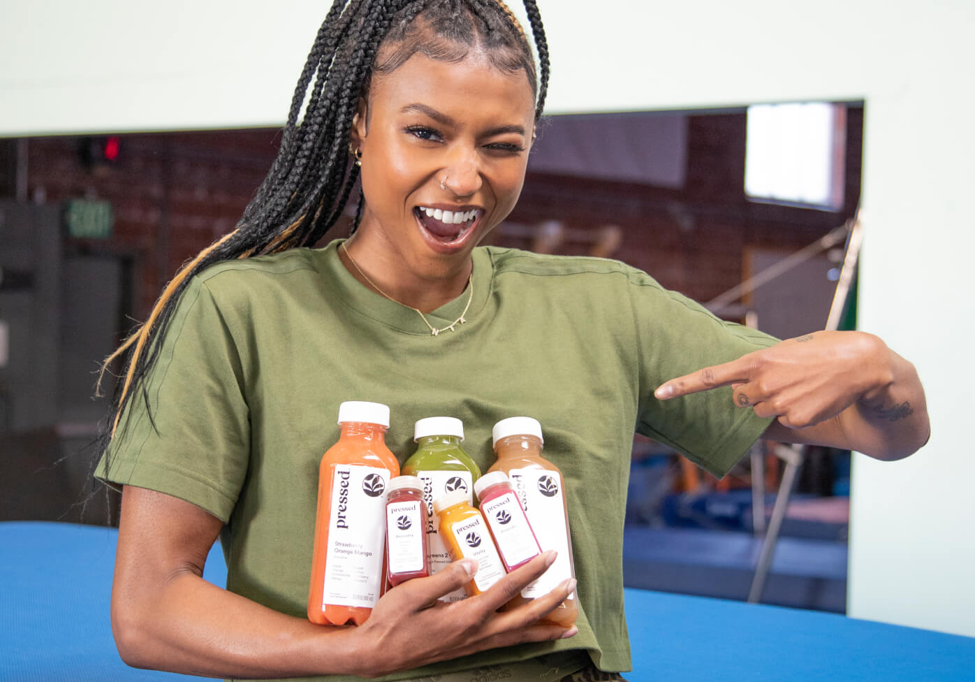 When we chose not to make a resolution this year but instead make small shifts towards improved wellness, we were delighted to discover that UCLA National Champion Gymnast, Nia Dennis has the same philosophy. Working with Pressed, Nia now enjoys vitamin-rich juices and functional shots throughout her busy day to stay nourished and energized—it’s just one of the small steps she’s taking to hit her nutrition goals and feel her best throughout the year.