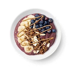 Power up and power on with this mighty bowl of goodness! Our Acai Power Bowl is packed with 14g of protein thanks to a topping combo of satiating almond butter with banana, almonds, granola, and blueberries. Pack a nutrient-rich blend of acai goodness for a health-friendly way to get your daily fuel.