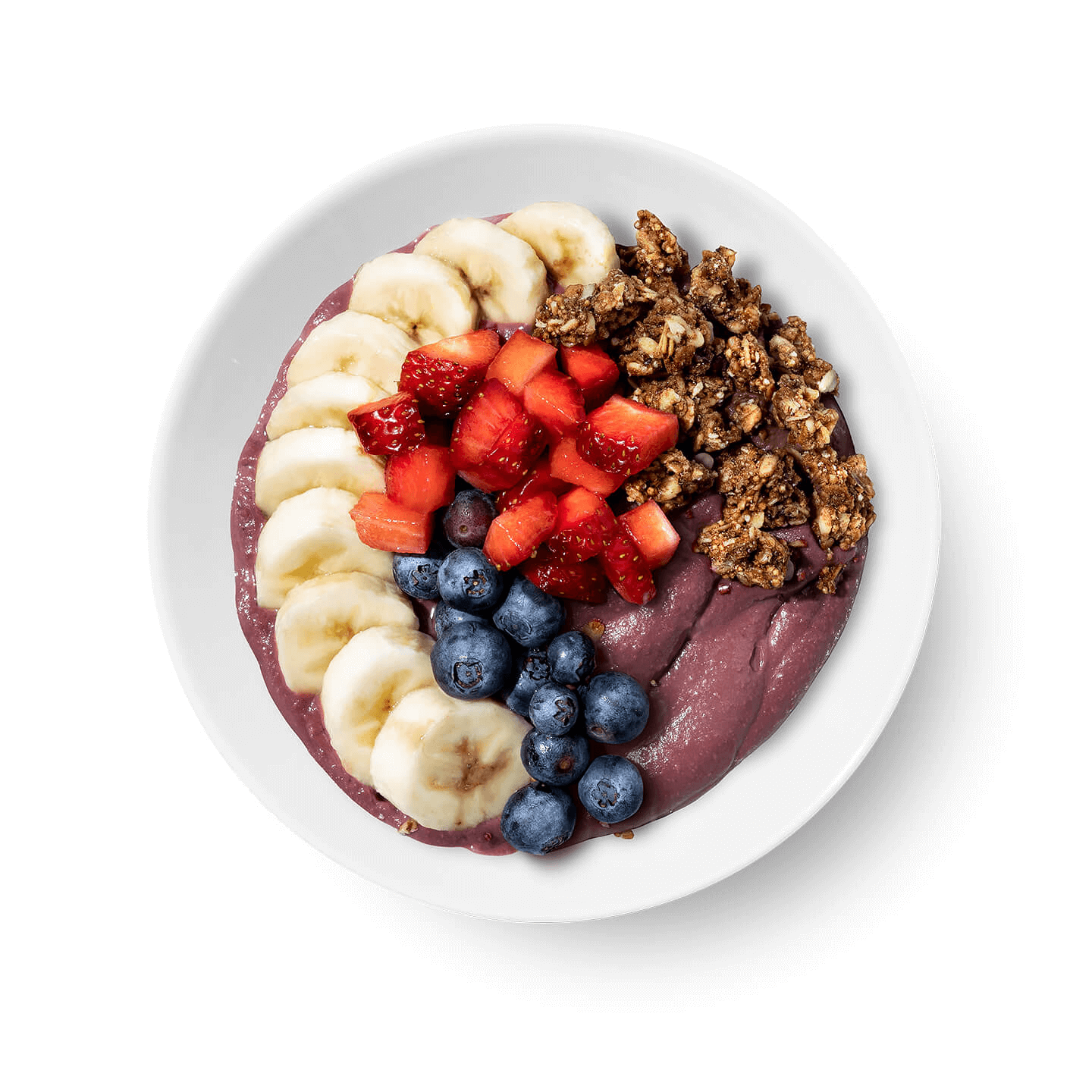 The OG acai bowl that started it all. Our clean take on the classic features our original base blend and topped with banana, berries, granola, and agave. With 10g of protein and no refined sugars, enjoy this wholesome bowl of goodness to please your midday sweet cravings or as a satiating breakfast to fuel your day.