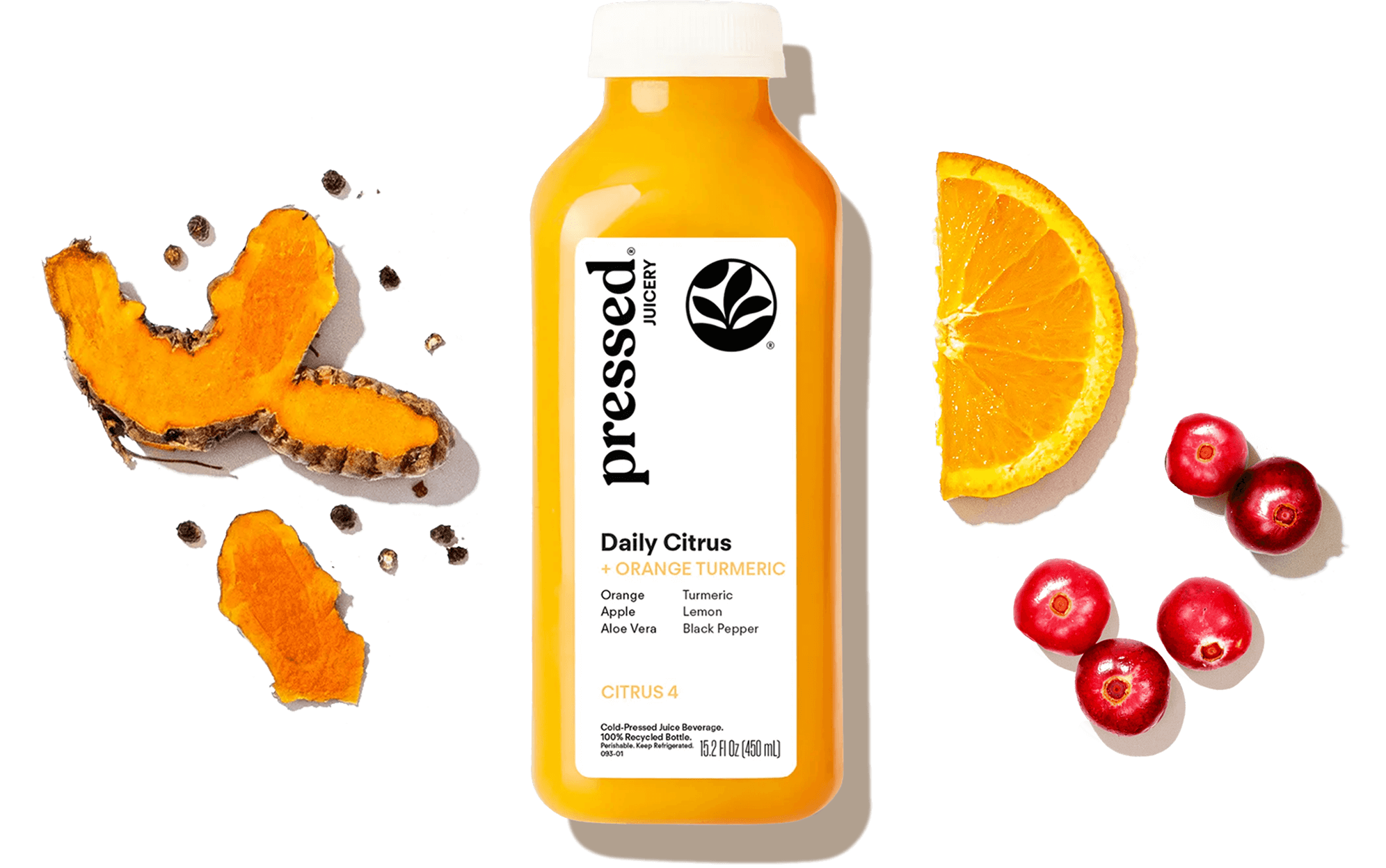 - 4 oz Pressed Orange Turmeric Juice (made with real orange juice)