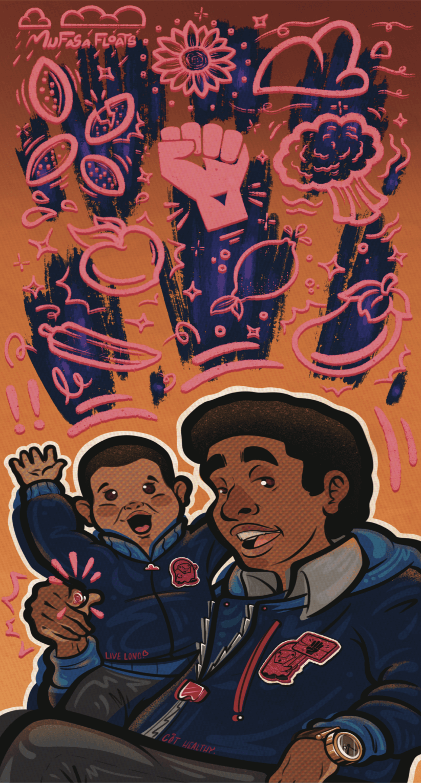 I think of my family and love during Black [History] Excellence month. I wanted to display the bond between a father and child; a moment that is untainted. Many Black men are devout fathers excited to guide, feed and equip their newborn with the skills to persevere and inspire. My father gave me the support and education needed to follow my passions; a blessing I now echo through my community.