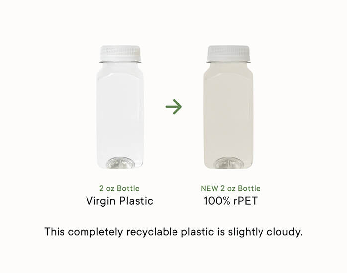 As we continue on our journey toward minimizing our environmental impact, planet-focused packaging remains an ongoing goal. Using materials like rPET, which can be recycled again and again, is a step in the right direction. But upgrading our 2oz shots is just the first of many steps we are taking toward reducing our overall use of plastic, decreasing our carbon footprint and building a better future one bottle at a time.