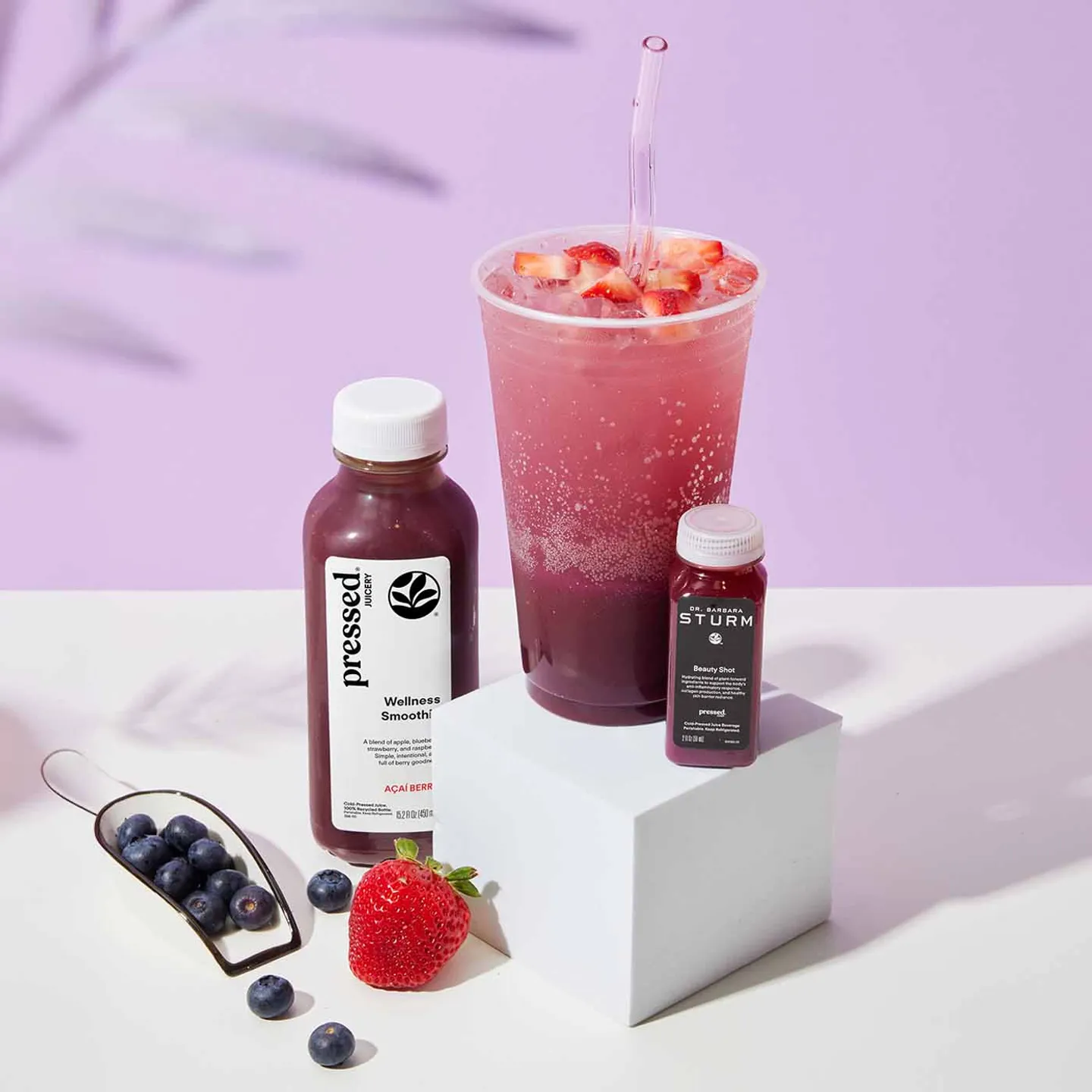 Elevate your selfcare routine with our Beauty Shot, featuring pomegranate, aloe vera, pineapple, and lemon, delivering a burst of essential vitamins and minerals, including 250% vitamin C and 100% biotin, to help nourish and support your complexion from within.