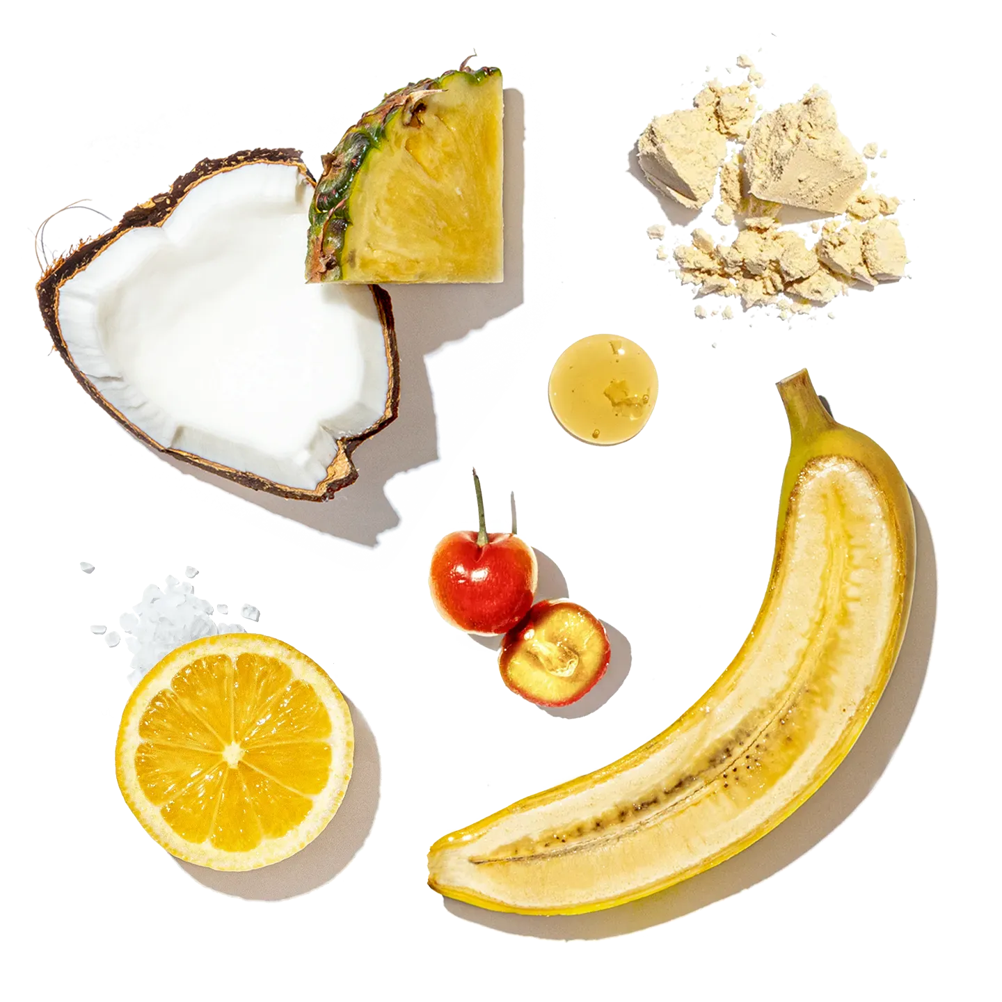Made With Banana, Strawberries, Mango, Hemp Seeds, Almonds, Pineapple, Coconut Milk, Agave, Pea Protein, Lemon, + Sea Salt